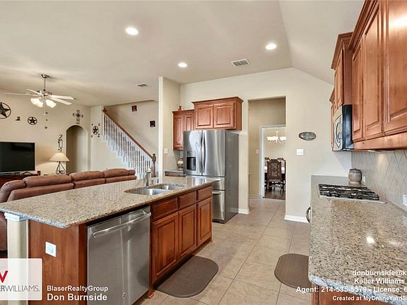 Marvelous brick and stone home with attractive landscaping and stylish interior design elements including vaulted ceilings, tile and wood floors, arched passageways and more. Spacious kitchen features granite counters, island sink, tile backsplash, recessed lighting, and stainless appliances including built-in microwave, oven, and gas range. Expansive downstairs living room with abundant natural light and wood-burning fireplace with gas starter. Lovely master suite with huge walk-in closet and bath with his & hers vanity, garden tub and separate shower. Single room upstairs, suitable for use as game or media room. Community features include pools, tennis courts, jogging trail, and hockey rink.