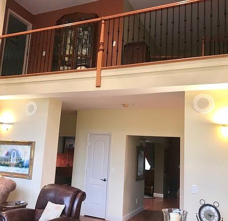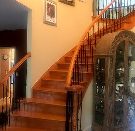 Curved stairs in 2 story entry way, 2 story living, great room, and foyer. Balcony overlooks great room. 2 gas fireplaces with decorative travertine mantle. Granite counter tops in kitchen and baths, ample cabinet and counter space in kitchen, Laundry room with custom cabinetry & 2nd stairway. Master bath with whirlpool tub and separate shower, built in cabinetry in closet and bath. 1400 sq.ft deck,with storage underneath. Large crawl space storage. 3 car garage with cabinetry and w/2 oversized closets
