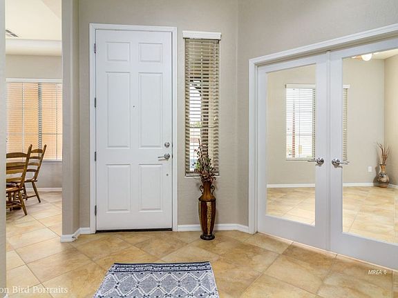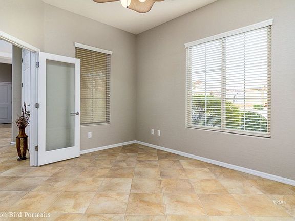 Pristine Willow model home near the top of a cul de sac in Reunion Valley - one of the most desired neighborhoods in Sun City Mesquite. Professionally maintained, it looks brand new. Neutral custom paint throughout the home compliments the large diagonally laid tile extended throughout all living areas. Open Concept Floorplan. Highly upgraded Gourmet kitchen + double ovens! Rich Cherry cabinets, crown molding and pull out drawers. Under cabinet lighting accents the gorgeous Giallo 3 cm granite. Big pantry + Center island is a chef's delight. Premium stainless steel appliances complete the dream kitchen. New in 2018 - Amana 16 SEER Split Heat/AC system w/ 3 Nest thermostats - SO energy efficient plus 3 different zones. Kitchen nook for casual dining, large granite breakfast bar, a big dining area for entertaining. Large Master bedroom w/ tall windows and tray ceiling. Master bath - custom tile, dual sinks, walk in shower, garden tub and HUGE closet. Other side of the home are 2 bedrooms w/ their own bathroom plus a 1/2 bath ! Den with glass doors. Laundry room cabinets and a sink. Oversized garage. Desert Landscaping. PLUS $8000+ SIDS are paid ! Ready for immediate occupancy