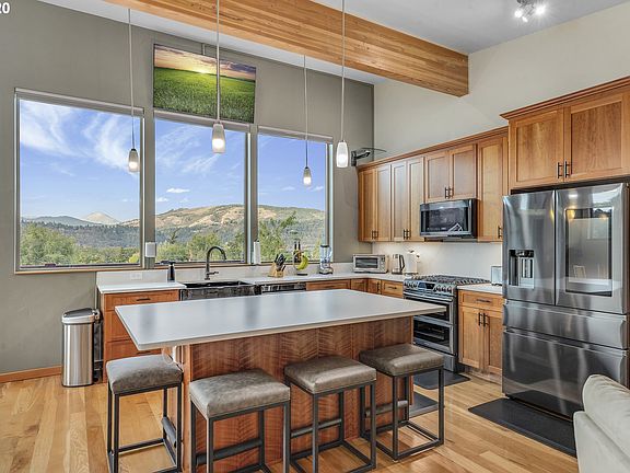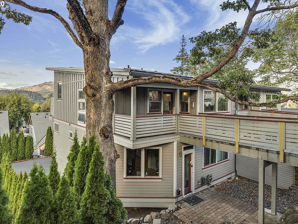 Fabulous 1 Owner Hideaway! Entry bridgeway; light filled great rm, hardwd floors, gas fp, high ceilings. Kitchen: quartz island, cherry cabinets & newer smart appliances. Mt. Adam's view & Columbia River to the E. Generous deck; outdoor fun. Mid level: Mt. View master, lovely tiled bathrm & walk in closet. 2nd bedrm & 3rd bedrm; outdoor access to private courtyard. Fabulous finished garage! Dbl parking: on Lincoln & from Wasco below. FA Gas/AC Dreamy full time or 2nd hm. Check out features list!