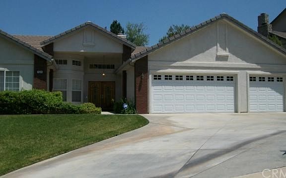 Custom built one story Mediterranean style home only 16 years old. This wonderful home is located on a very large private lot and features: formal entry way, 4 large bedrooms including extra large master bedroom with vaulted ceiling, 3 bathrooms, large and open family kitchen, family room with fireplace, elegant living room, formal dining room with wet bar, laundry room and 3 car garage. This property is in immaculate condition, has a lot of quality upgrades including bull-nosed corners, plantation shutters and recessed lights, and is ready to move into. The interior and exterior paint is in nice and clean condition, and a quality lifetime warranty roof has been installed. Large, double pane windows and french doors in the back of the house provide lots of bright light. The large and open driveway compliments the architecture of the property. Impressive back yard with beautiful landscaping. A large concrete patio with a view of the surrounding area is perfect for entertaining or enjoying the outdoors. This property has central heating and air conditioning and a front and back yard sprinkler system. A perfect family home in a great, exclusive location, in close proximity to the 91 and 215 freeways...Must see to appreciate...This is it!