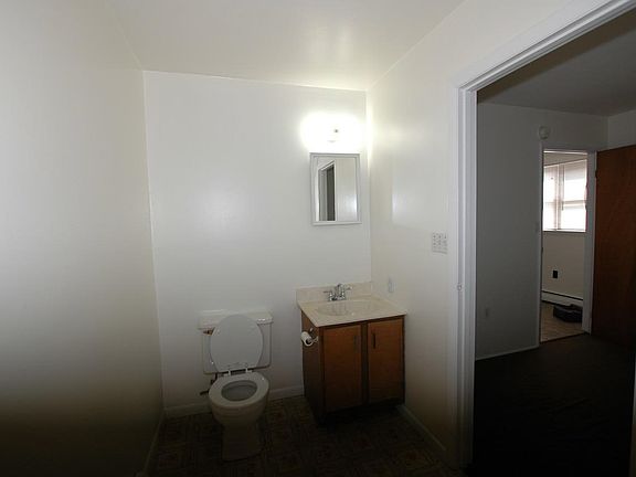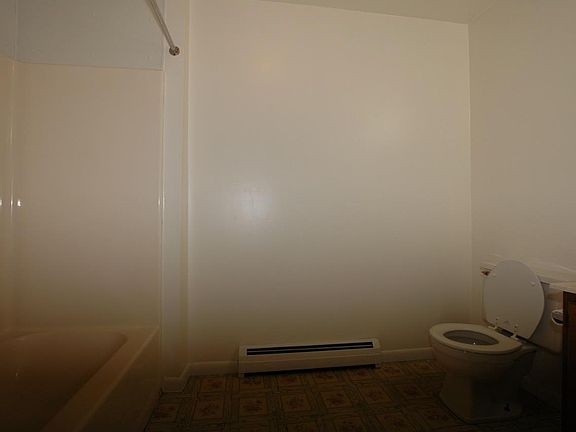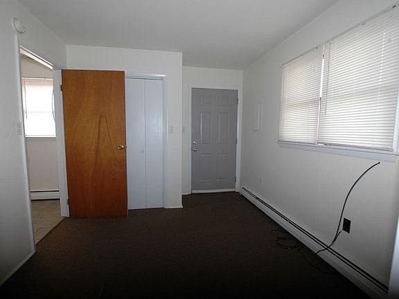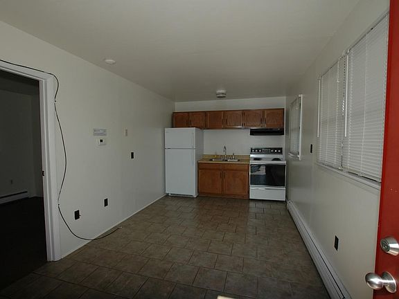 * Second floor, one bedroom, one bath apartment with approximately 310 square feet of living space. * Kitchen/Dining Room (17 x 9 ) with wood cabinets & ceramic tile flooring. Refrigerator and range included. * Bedroom (11 x 9 ) with carpet and closet. * Bathroom (9 x 5 ) with shower over tub and vinyl flooring. * Hot water baseboard heat with a thermostats in in the apartment. * Coin-op laundry in basement of building. Lockable storage cage in basement. * Off-street parking in rear of building. Additional street parking on Moore Street. Owner pays heat, water/sewer, trash. Tenant pays electric.