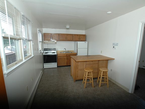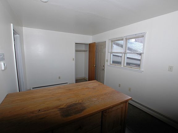 * Second floor, one bedroom, one bath apartment with approximately 310 square feet of living space. * Kitchen/Dining Room (17' x 9') with wood cabinets & ceramic tile flooring. Refrigerator and range included. * Bedroom (11' x 9') with carpet and closet. * Bathroom (9' x 5') with shower over tub and vinyl flooring. * Hot water baseboard heat with a thermostat in the apartment. * Coin-op laundry in basement of building. Lockable storage cage in basement. * Off-street parking in rear of building. Additional street parking on Moore Street.