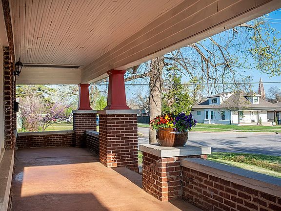 Grand living room with decorative fireplace, bookshelves, and French doors. Two dining areas--formal dining and breakfast nook. Gorgeous hardwood floors (newly refinished) throughout. New blinds throughout. New ceiling fans throughout. Updated kitchen (granite counter-tops) and bath (marble tub surround, tile floor). Stove, fridge, dishwasher, washer, dryer, and garbage disposal included. Excellent closets. Large basement. Central heat and air. Fantastic wrap-around front porch. Spacious, fenced back yard. Single car garage (detached) with automatic garage door opener. Very sunny and cheerful home! Terrific central OKC location. Walk to Plaza District. Bike to Midtown, Uptown, and Downtown. NO SMOKING. Tenant responsible for water, trash, gas, electric, and lawn.