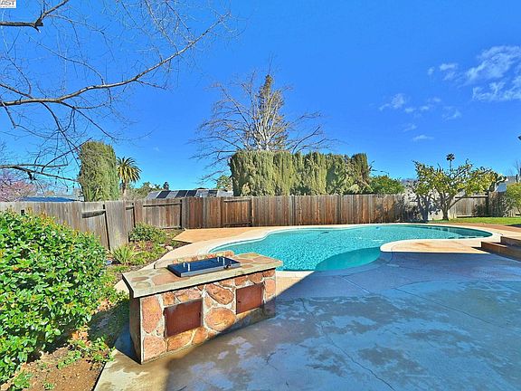 Sought-after south Livermore single story in a prime location! This Redwood model features a superb court setting in Sunset East, steps from neighborhood park & Sunset Elementary School. Spacious, private lot with large pool, expansive patio and room for more. This is a well-cared-for and exceptionally clean home, with updates including Presidential composition shake roof, updated HVAC, dual pane windows, gas fireplace insert, hardwood & laminate flooring, & new front yard sod. Rooftop solar means a substantial savings in energy costs. Close to all the amenities of charming downtown Livermore!