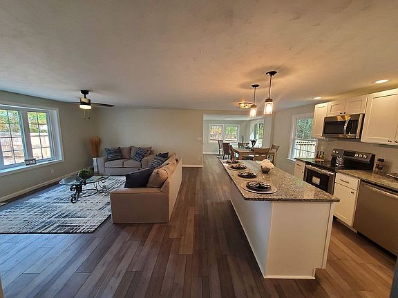 Renovated home by local, experienced company. New almost everything. Master bedroom suite, walk in closet & bath w/ skylight. High end kitchen cabinets, granite counters, stainless steel appliances. Luxury vinyl tile and synthetic carpet floors. New doors, paint, lights. New bathroom fixtures/tubs. Walk down deck. VERY large yard. New central air/heat & electric water heater. Secluded in-town house next to multi-acre wooded area. Schedule showing soon to come see this unique property!