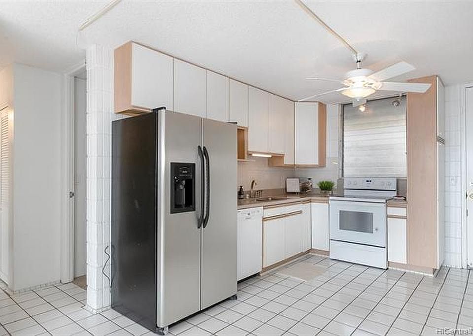 This charming two bedroom one bath apartment features upgraded cabinetry with Corian countertops, ceiling fans,and ceramic tiles throughout the kitchen, living room and bathroom. The home offers an outdoor lanai for relaxing,a same level parking stall directly in front of the unit, and additional storage. Pensacola Gardens is centrallylocated in Metro Honolulu with convenient access to freeways.
