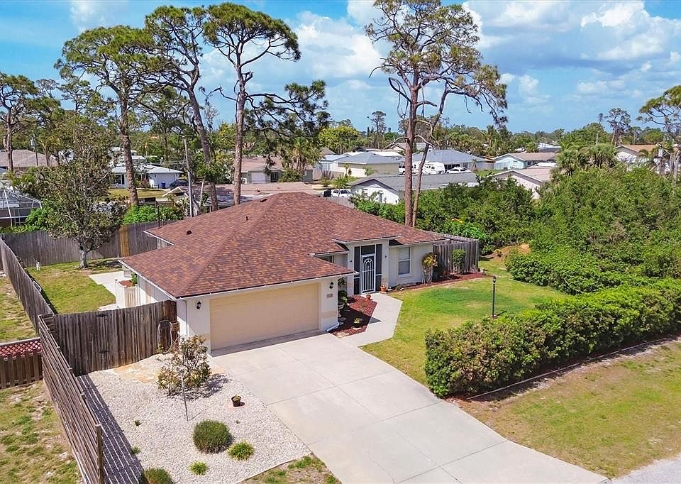 LOCATION, LOCATION, LOCATION!! Located just half a mile from the South Venice Ferry and private beach, this well-maintained 2 bedroom, 2-bathroom home WITH A FLEX ROOM, offers both comfort and convenience. This home sits on a quiet street in a neighborhood NOT IN A FLOOD ZONE with NO HOA OR CDD FEES! Step inside to find cathedral ceilings, a spacious kitchen with a breakfast bar, and an inside laundry room for added convenience. The home features a welcoming screened foyer entry, a walk-in closet in the primary bedroom, and a screened lanai in the rear—perfect for enjoying Florida's outdoor lifestyle. The fenced backyard and the front landscaping provides privacy. Additional highlights include a shingle ROOF REPLACED in 2023, AC in 2024 and new WATER HEATER 2023 so all the big ticket items have been taken care of. There is a full culvert pipe in the front (no swale), and a 2-car attached garage. Don't miss this fantastic opportunity to own a beautiful home in a prime location close to the South Venice Ferry!