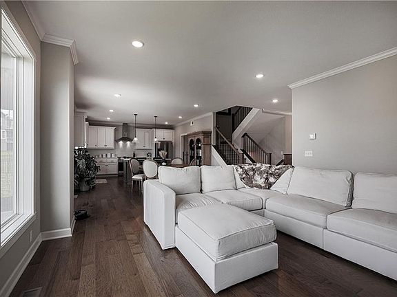 The gourmet kitchen is a showpiece, featuring stainless steel appliances and a spacious layout perfect for entertaining. The family room is accented by floating fireplace shelves, adding a touch of sophistication. The expansive covered patio with a fenced-in yard is ideal for outdoor gatherings. Functionality is key in this home, with a huge drop zone featuring built-ins opposite the walk-in pantry, ensuring ample storage space. As you walk upstairs, you will find three bedrooms, and two full bathrooms, and the private owner suite offers a serene retreat with a spa-like bath, double vanity, and an impressive 18-foot-long closet. Walk-in closets are found throughout the house, providing plenty of room for all your belongings. The inviting rocking chair front porch is the perfect spot to relax and unwind. The basement is ready to be finished, and you could add another bedroom, a bathroom, and a recroom area. The HOA amenities are top-notch, including a huge community pool with a reef area, slide, and kiddie pool, a clubhouse, a playground, and trash/recycling services. This home is conveniently located close to nearby retail and recreational opportunities and is just moments away from the award-winning Lee's Summit schools that serve the community. Don't miss the chance to own this exceptional home that combines modern luxury with timeless farmhouse charm.