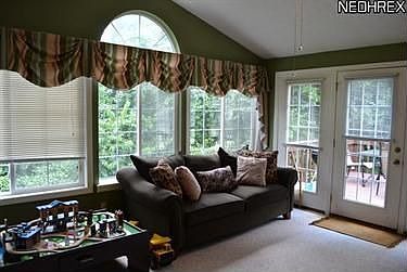 Former Drees Homes model, shows like new. Newer paint & carpet. Dramatic vaulted ceilings. Living room and private sunroom have a wall of windows. Hardwood flooring in foyer & kitchen. Soaking tub in master bath. First floor laundry room. Sunroom opens to deck and a wooded setting in back yard. All window treatments and blinds stay. Second level loft overlooking living room and second bedroom and bath, both with built in shelving. Storage cabinets in basement and garage stay. Loads of storage. Side-load two-car garage. Fantastic price for this great condo!
