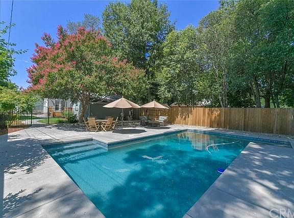 Chico Avenues Charmer. This classic 1912 built home has been remodeled with many updates. Wood flooring with an interesting backstory/history (ask if interested!) in the main living areas. A bright, light modern kitchen with tile flooring and Corian type counters and island. This 2 bedroom (w/2 master suites!), 2.5 bath home has a bonus room/den/office that should be an easy conversion if a 3rd bedroom is needed. Tall ceilings, crown molding and an open floorplan make for a perfect flow for your daily personal use, or for gatherings of friends and family. Double size lot, nicely landscaped with a BEAUTIFUL, private in-ground pool and spacious pool deck area for outdoor gatherings. Pop up pin pool covering, newer pool equipment and 5.75 KW solar/photovoltaic system to keep those PG&E bills low! Long, gated driveway and detached garage (with basement/storage area) for boat/toy parking and RV potential. Come see this property and fall in love!