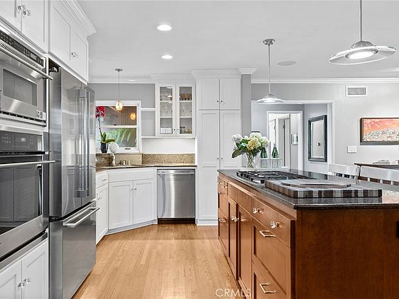 Located in the prestigious Harbor Highlands 1 section of Dover Shores, 1524 Sylvia Lane presents an opportunity to live in one of the most in-demand neighborhoods of Newport Beach. Sited on a quiet, tree-lined street, this home spans approximately 1,976 square feet of living space and features four bedrooms and two-and-a-half bathrooms. The heart of this home is comprised of a spacious kitchen with an adjacent dining area, along with a large living room. Anchored by a wood-burning corner fireplace, the kitchen-dining space abounds in charming details such as natural hardwood flooring, a center island with a gas range, custom lighting, and crown molding. Pleasing the most discerning of home cooks, the kitchen features two-tone custom cabinetry offering ample storage, natural stone countertops and a suite of stainless-steel appliances. Built for entertaining as well as day-to-day living, the floor plan allows for a seamless connection into the home’s large living room, with vaulted ceilings, a gas-burning fireplace, and multiple windows with plantation shutters. The primary bedroom offers ample closet space, privacy and an ensuite bathroom. The three secondary bedrooms of this home are all generously sized and share a hallway bathroom. Accessed through the French doors from the dining area, the backyard of 1524 Sylvia Lane is a gardener’s dream, with numerous fruit-bearing trees (apple, lime, lemon, avocado and passionfruit) planted to attract butterflies as well as hummingbirds. For those who wish to entertain outdoors, the hardscaped portion of the outdoor space features classic brick elements and accommodates a sitting area as well as a table large enough for a party of eight. Other features of this home include central air conditioning as well as heating, custom surround sound, exterior speakers, and hardwood flooring throughout. Fantastic location, minutes away from all the area is known for: award-winning schools, 17th Street with its conveniences, Back Bay Nature Preserve, world-renowned beaches, Fashion Island, and John Wayne Airport.
