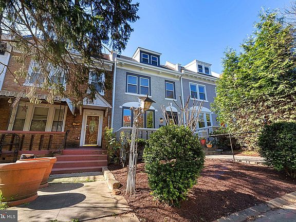 This handsome center block row home stands out from its neighbors with a newly painted façade and professional landscaping. A foyer inside the front door is an introduction to an open floor plan, which flows easily around the living and dining rooms into a centerpiece gourmet kitchen and pantry. Stainless steel appliances and quartz countertops, complete with a breakfast bar and waterfall end, accent the beautiful white custom cabinets. Hardwood floors, a half bath, and a deck off the back of the house, round out a warm and inviting main living space. Upstairs is home to the primary bedroom which spans the front of the home and has two well-sized closets. The balance of the upper level is light and airy with a skylight in the renovated full bath complimented by wall to wall south facing windows across the back of the house . The spacious second bedroom has a lovely back section with built in shelves and a window seat, making for a perfect reading nook. The third bedroom has passthrough bookshelves, which divide the room as a guest suite with a sitting room or as a proper office that can fit a day bed as well. The versatile lower level is fully finished and serves as a great bonus room, or lower-level family room, or even a home fitness area. Off of the lower level family room is the home’s second full bathroom, storage, a utility room and direct access to an attached one-car garage. The south facing backyard, while charming as is, can be transformed using the recently commissioned landscaping renderings the sellers will provide to the future owners, allowing them to help envision the full potential for the space for wonderful outdoor living and entertaining. All in all, 1524 Upshur is ready to fit all of your needs today and will provide a comfortable dwelling for years to come. Welcome home!
