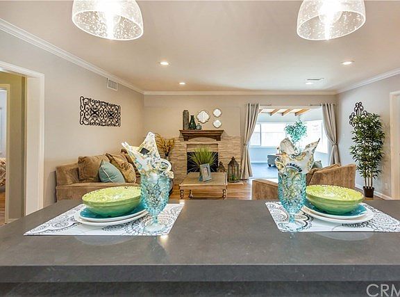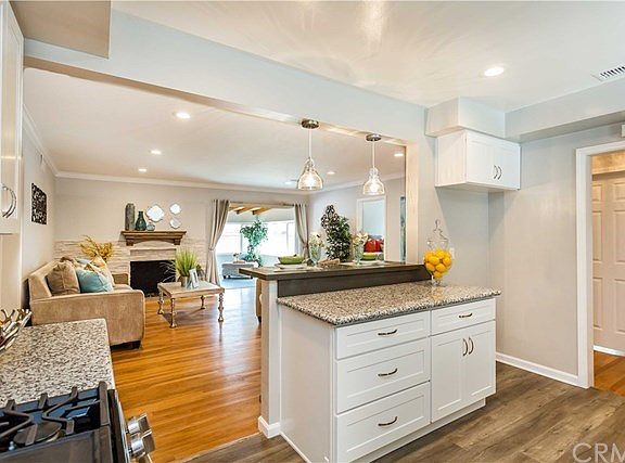 One of the nicest homes you will find in this price range! This 4 bedroom, 2 bathroom home has been completely remodeled and includes a brand new kitchen with granite countertops, subway tile backsplash, a quartz breakfast bar with pendant lighting. Stainless steel appliances that include a gas range, microwave, dishwasher and sink, recessed lighting, smooth ceilings, new flooring and refinished wood floors, custom bathrooms with decorative vanities and custom tile work with both showers, new central air conditioning, new furnace, all new ducting, new pex plumbing, 2 fireplaces with crushed glass, tumbled stone fireplace surrounds with mantel, ceiling fans, dual paned windows, newer roof, all new interior and exterior paint, new 4 panel interior doors, new water heater, and a new roll up garage door with opener! This home features a separate family room area complete with fireplace and wood beamed ceilings. All new backyard sod being installed! Sunny Hills High School and walking distance to elementary school! Located close to freeways and shopping and restaurants.