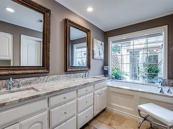 Impeccably maintained beautiful one story blocks from White Rock Lake. Gorgeous hardwoods inlaid with travertine greet you as you walk in the custom butterfly lattice door. Kitchen and master bath fully renovated in 2015. Granite counter-tops, farm sink, convection microwave, ss appliances, travertine floors. LR has white washed wood and vaulted ceilings with a gorgeous chandelier, built-in-shelves, gas fireplace. Spacious master with large walk in closet and a spa like master bath. Plantation shutters , crown molding, boxed ceilings, canned lighting. Laundry room with sink. Low maintenance mostly flagstone patio backyard is perfect for a carefree lifestyle. Backs to a private park. This gem is a must see!