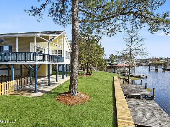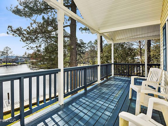 Just in time for summer - this outstanding waterfront location is available - hop in the boat and the Jourdan River is just seconds away. 90' of waterfront, bulkhead and dock with ample storage downstairs for party supplies and fishing gear. Recent updates, new roof and fresh paint inside and out! Features include a soaring ceiling with beams, a second floor loft, open kitchen and breakfast area with no carpeted flooring. Enjoy the sunsets and views of the river from the western facing porch. Check it out on the Immersive 3D Tour and drone shots provided.