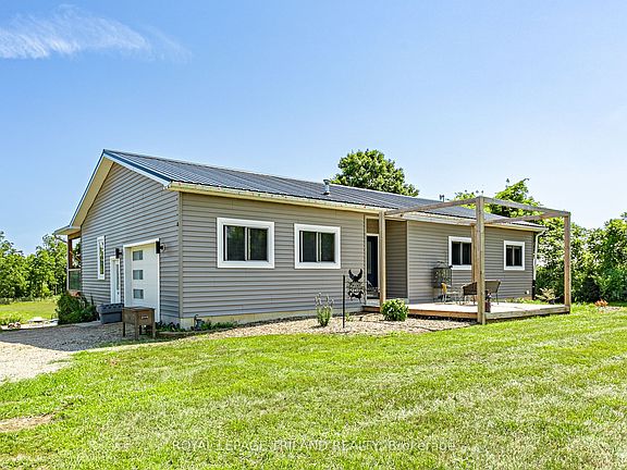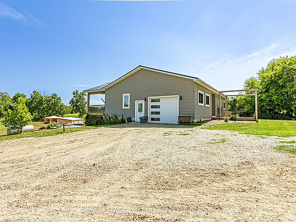 Welcome to this beautifully designed 5 bedroom, 3 bathroom 3.1 acre property. Situated on a spacious lot, this home offers an inviting layout perfect for families and entertaining. Step inside the main floor and you're greeted by rich walnut flooring throughout and a bright open concept living space. The kitchen is a chefs dream with custom maple cabinetry, granite countertops, and ample space for cooking and gathering. A sliding door from the living room opens to a deck with a scenic view overlooking rear of the property, ideal for morning coffees or relaxing evenings. The main level features three generously sized bedrooms, including a primary bedroom complete with a walk-in closet and private 3-piece ensuite. Convenience is key with main floor laundry at the end of the hall. During the colder months you can enjoy the comfort of the heated attached garage. Downstairs, the fully finished basement offers a large rec room anchored by a cozy gas fireplace, two additional bedrooms, and a full 4-piecebathroom, perfect for guests, teens, or a growing family. Two sliding doors provide walkout access to the rear of the home, bringing in natural light and extending the living space outdoors. Don't miss your chance to call this one home!