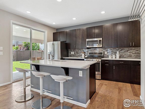 As you enter this home you are greeted with an open concept layout featuring a chef's kitchen with huge center island, quartz counters, 42-inch cabinets, designer tile backsplash, 5 burner gas range, walk-in pantry & stainless-steel appliances, a Great Room with vaulted ceilings, a dining area, an office, a powder room & is accented with beautiful hand scraped engineered wood floors throughout. Upstairs boasts a primary bedroom with ensuite bath featuring designer tile, walk in shower, large soaking tub, dual sinks, light tube bringing in abundant natural light & huge walk-in closet, plus 3 additional bedrooms & shared bath with designer tile floors & tub surround, dual sinks & second door to tub/toilet room, & a laundry room. The finished basement features extra high ceilings & boasts a kitchenette/wet bar with granite counters, designer cabinets, tile backsplash, bar fridge, dishwasher, microwave, dual tap keg fridge, stylish pendants, & tile floors & is situated adjacent to a large family room. The basement also features a bedroom with huge walk-in closet, a bath with walk in shower, rain shower head & body sprays, quartz counters & designer tile, & a storage room. Upgrades include hand scraped engineered wood floors throughout main level, brand new carpet & pad throughout upper level, Smart Lights for front exterior lights, & other designer touches throughout! Enjoy relaxing on the extended covered patio overlooking the beautifully landscaped backyard, take in the Table Mtn views from the covered front porch or enjoy all that the Colorado outdoors has to offer with its convenient location providing easy access to the extensive trail system at North Table Mountain. The Gardens at Table Mountain community features a pool, playground & picnic area & provides easy access to trails, shopping, restaurants, entertainment, downtown Golden & more. The home also feeds into Fairmount Elementary School, a 2022 National Blue Ribbon School.