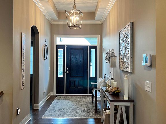 Beautiful home on the water. Newer home with 4 bedrooms, open concept living on the main floor. Open with kitchen, dining room, living room. Master bedroom offers walk in closet, double vanities, large walk in shower, door to screened in porch. Basement is finished with large family room, bedroom, large full bath. Plus large storage area. Screened in porch for summer/spring to enjoy the pond. Tankless hot water heater. Extensive Professional Landscaping, landscape lighting, invisible fence, ceiling fans in all rooms, professional well covers, blinds/shades, Blanco Kitchen Sink, New front storm door, New sump pump and backup installed 2022.