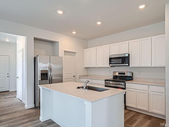 *** This home eligible for special financing - Terms and conditions apply - Ask for details!***Welcome to East Creek Farm, where modern living meets exceptional design. Presenting the Lucent II, a thoughtfully crafted 2-story paired home that offers both functionality and versatility. The main level showcases an open-concept layout, featuring a chef-inspired kitchen with a large eat-in island overlooking the dining nook and great room. The laundry room is strategically located on this Main Level for easy access. The upper level is designed for comfort and convenience, offering three bedrooms, including a luxurious owner's suite complete with a spa-inspired bathroom and a spacious walk-in closet. This home is also 100% electric, combining energy efficiency with contemporary living. East Creek Farm boasts an ideal location, seamlessly blending urban convenience with outdoor recreation. Residents can enjoy nearby shopping at the Denver Premium Outlets and Orchard Town Center or explore the scenic trails at Thornton Trail Winds Park and Open Space. With an estimated completion date of May 2025, this home is ready to redefine your living experience.