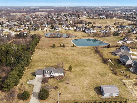 Wonderful secluded 6 bedroom home on 3 acres on a finished walk out basement. Pole Barn includes 4 horse stalls. Master bedroom on the main floor with a sitting area. Lower level is finished with four bedrooms, a full bath and a tv lounge. Upstairs has a bedroom, exercise room an sitting area.