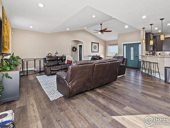Welcome to this stunning 5-bedroom, 4-bathroom home built in 2014 by custom home builder, Elrick Construction. Situated on 7.61+/- acres, this recently remodeled property offers luxurious living in a peaceful rural setting. A tree-lined, crushed asphalt driveway leads to meticulously finished landscaping, complete with a sprinkler and drip system, concrete borders around the lawn, and a 4-foot concrete perimeter around the house. The home is further enhanced with soffit lighting around the exterior, adding elegance and charm to the property. Inside, each bedroom features a walk-in closet, and the master suite boasts a private 4 piece ensuite bath with built in makeup table. The open floor plan, recently updated with modern finishes, is perfect for entertaining and family gatherings. The basement offers even more space, featuring a wet bar, open layout, and abundant storage. Outside, the property includes a swimming pool pad ready for customization, a dog run, and a concrete walkway to the heated and insulated 40' x 64' shop. Conveniently located just outside of Wiggins and within an hour of most Front Range amenities and DIA. This home perfectly blends high-quality craftsmanship, modern updates, and the serenity of country living.