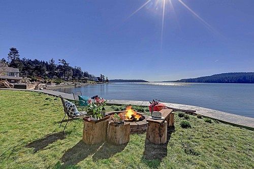 Spectacular 80 ft. of low bank waterfront home is perched at waters-edge. Own your own Tidelands! Enjoy deep water boat traffic and soaring eagles in your private cove on sandy Dewey Beach ideal for swimming, and kayaking. Fish off your new bulkhead, then relax at sunset next to the fire pit to enjoy your fresh catch of the day. This charming home is full of light and located just 5 min. to Deception Pass, fine dining, and shopping that quaint DT Anacortes offers. A lifestyle for the discerning.