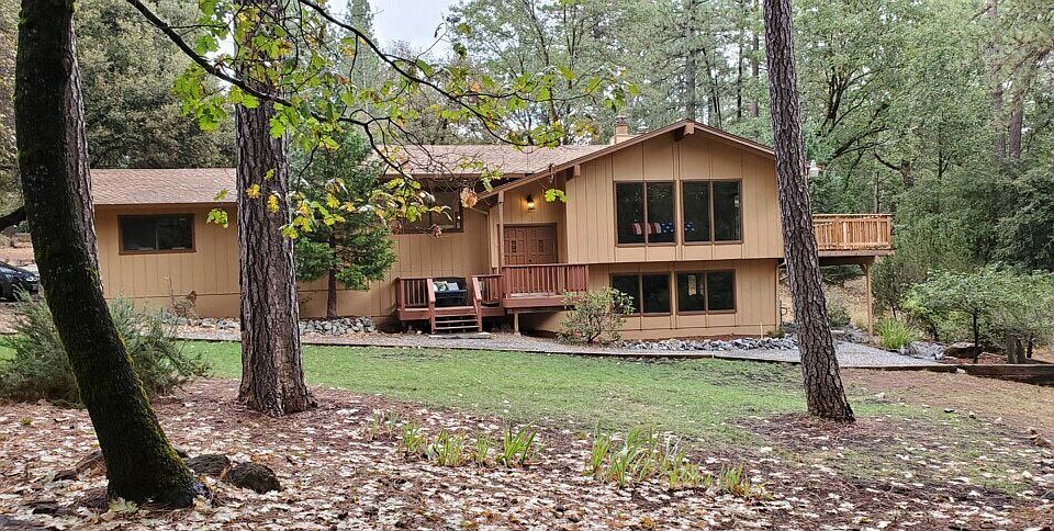 This home is situated on 2.5 acres of land. A Beautiful setting on a quiet private road with very little traffic . It features a large detached building / shop and smaller building / shed for storage, Garden equipment etc..The home is a split level. First level (top level) features large living room, dining room, kitchen, two bedrooms and two full bathrooms. Second level (bottom level) features large living room, 2 bedrooms, 1 large den / office space, 1 full bathroom and large laundry room. The home features a large covered patio quickly accessible from kitchen and a Large deck accessible from the first level living room and bedrooms. Central heat and air and 30 year roofing . Wood burning air tight wood stoves on each level.