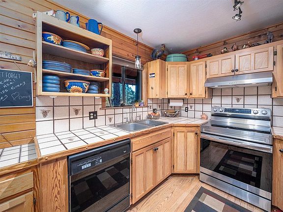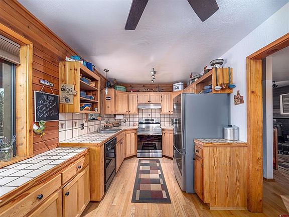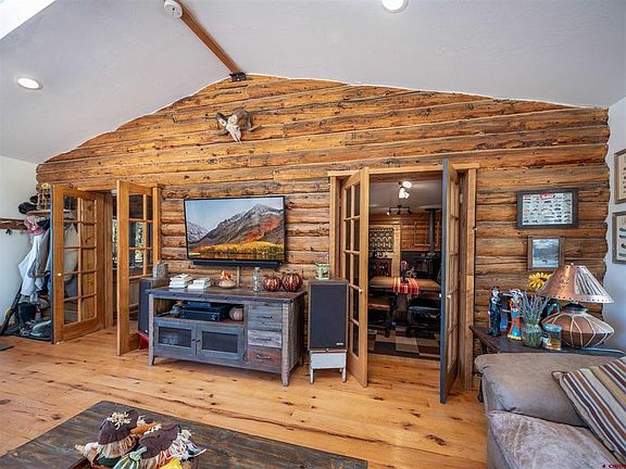 Colorado cabin in the pines! This cozy 3 bedroom/2 bath cabin between Mancos and Dolores is what you've been waiting for! With maximum visual privacy on 5.2 Ponderosa Pine covered acres - the home and property feature lots of extras. The updated and modern kitchen has quality fixtures, oak cabinetry, track lighting and new stainless appliances. The gorgeous hard wood floors and tongue-in-groove wall wood and ceiling create a classic mountain cabin interior. The brightly lit sun room is made extra comfortable with a high end Quadra Fire wood stove. Upstairs features additional living and sleeping space. Plus - the upstairs master bedroom has an ensuite bathroom and private deck overlooking the land. The cabin has full wrap around covered porch, decks, two car carport and attached shop/bunkhouse that the sellers have used for extra guest quarters. Outside is nicely landscaped with concrete patio, paved walkways, with plenty of room for relaxing and entertaining in the beautiful setting of the pines . There's also a well built log shed great for storing firewood and tools. For even more extra storage there's loads of room in the upstairs storage area above the carport and bunkhouse. Great for year round living or a cool summer retreat, the property is just a short distance to Durango, Cortez, Dolores, Mancos ,Telluride and the San Juan National Forest.