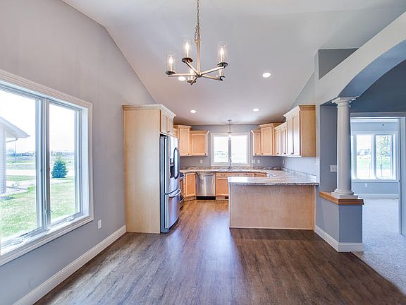 Beautiful 1 story townhomes have very open floor plan. Kitchen, dining, and living room have vaulted ceilings, as well as the master bedroom and sunroom. The home is complete with a master bedroom that includes walk in closet and bath, second bedroom, hall bath, and laundry in hall. Garage is insulated and sheetrocked. Association fee covers lawn, snow, and exterior maintenance.