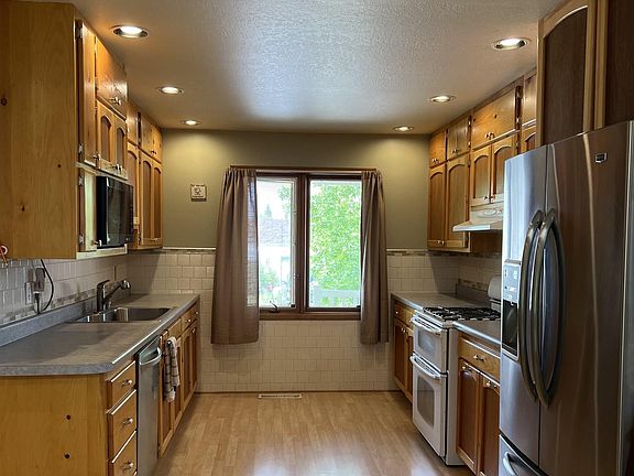 Impeccably cared for home in a super neighborhood! Beautiful mature landscaping with alley access that backs up to a Park! Wonderful outdoor living spaces with a big two car heated garage and no maintenance steel siding. Inside you will find 2 separate and roomy living spaces and one that has a gas heating stove. Four total bedrooms which includes a master suite and updated master bath. All of the bedrooms have cedar lined closets. Functional items like the furnace, electrical, windows