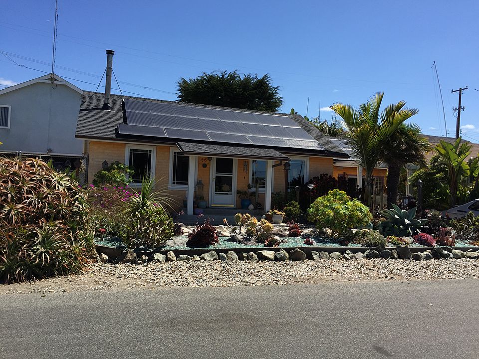 Typical beach cottage. Rare desirable double lot. 3 patio covers with defused-light ceilings, small blue water view from living room. Detached 2-car garage in rear with 576 sq ft workroom above it. Neighborhood Description Quiet & peaceful. All neighbors and kind and friendly.