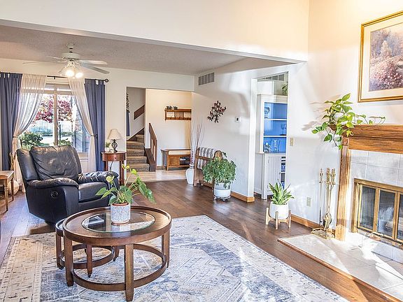 Experience breathtaking lake views in this stylish, two-story zero-lot home on tranquil Lake Devonshire. Step inside to a formal entryway that leads to a convenient half bath and a spacious open-concept living area, highlighted by vaulted ceilings, large picture windows, and a cozy wood-burning fireplace. The main level effortlessly transitions into an inviting eat-in dining space and a galley-style kitchen, beautifully updated with quartz countertops featuring a waterfall edge (2023), a new dishwasher (2023), a stylish tile backsplash (2023), a built-in water filtration system, and an under-mount sink (2023). Gorgeous new waterproof hardwood flooring installed in 2022 completes the main floor. Enjoy sun-drenched days on your expansive deck overlooking the water, with direct access to a scenic lakefront walking path—ideal for fishing and leisurely strolls. Upstairs, discover three well-appointed bedrooms, including a generous primary suite with custom black out blinds, a large walk-in closet and a private vanity area that connects to a full jack-and-jill bathroom. The home offers ample storage with a full laundry room and an oversized two-car garage, already set up with a 220V outlet for electric vehicle charging. This move-in ready gem boasts several updates, including a new roof and gutters (2020), fresh interior paint (2020), Cramer window replacements with a lifetime warranty, and complete cedar siding replacement in recent years. Don’t miss your chance to call this beautiful lakeside retreat your own!