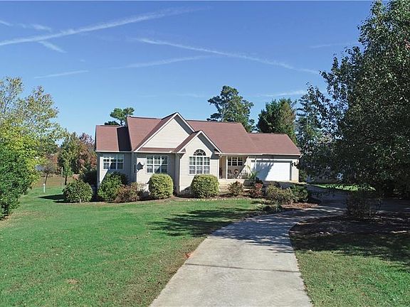 Who needs lightbulbs with all of these beautiful pituresque windows? This home boasts with views from every room. The countryside at the front of the home and the lake from the rear of the home! These owners had it all figured out when they had the floor to ceiling stone feature added around the gas fire place! Need extra space for company, or want to relish in being the "hostess with the mostest?", check out the fully finished walk out basement complete with bar! The newly covered back deck will sheild you from the sun's ray's and brace you from some of the wind off the lake, plus it's a great place to sit, bar-b-q, and just enjoy the views! Do you get your own dock? Of course you do! For the right price you can have the pontoon boat so perfectly perched there now! The open waters of Lake Hartwell are completely accessible to you. So just one question ... are you ready for lake life? 1525 Double Springs is MOVE IN READY for you! (USDA Eligible) *Boat sold seperately*