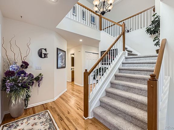 Welcome to Your Dream Home in Hunters Glen Pool Community on the 16th Hole! This stunning 2-story residence offers a perfect blend of thoughtful design and comfort w/3 Car garage. 5 bedrooms, 4 bathrooms, and 3,162 square feet, is ideal for both daily living and unforgettable gatherings. Updated interior features newer carpet, luxury vinyl, ceramic tile and hardwood floors. The inviting main floor offers a seamless flow, highlighted by a gourmet kitchen, a large breakfast bar, all s/s appliances included, abundant cabinetry, corian countertops and walk-in pantry. Main floor laundry which is plumbed in for utility sink adding convenience for busy lifestyles. Designed for entertaining, main level includes a formal living room, dining room, and cozy family room with a fireplace and built-in media shelving, this space caters to all occasions. Upstairs, the private primary suite boasts walk-in closet, and a 5-piece bathroom, vaulted ceilings. 3 additional bedrooms share an oversized hall bathroom. Basement is an entertainer’s dream, perfect for theater room, game room, crafting/hobbies, toy room, office or conforming 5th bedroom and full bathroom making it ideal for overnight guests. Fenced backyard and Gorgeous mountain views from the covered composite deck off the family room offer the perfect setting for relaxation and outdoor fun, Thorn Creek Community Golf Course. Pride of Original Ownership throughout...Roof & Fence2024*South and West Exterior Window Awning*Microwave 2021*Stove & Refrigerator 2013*Garage Door 2020*Carpet 2023*Furnace & A/C 2016*Garbage Disposal/Dishwasher 2024*Plumbing Fixtures*GE Washer & Dryer 2021*Exterior Paint 2021*Pool Community*Community Clubhouse* Conveniently located 2 miles from North Light rail, community amenities, walking distance to highly sought after 5 Star School District 12, shopping, major highways, trails, and parks! No Metro District! Ready for an owner who values dynamic living spaces and loves to entertain!