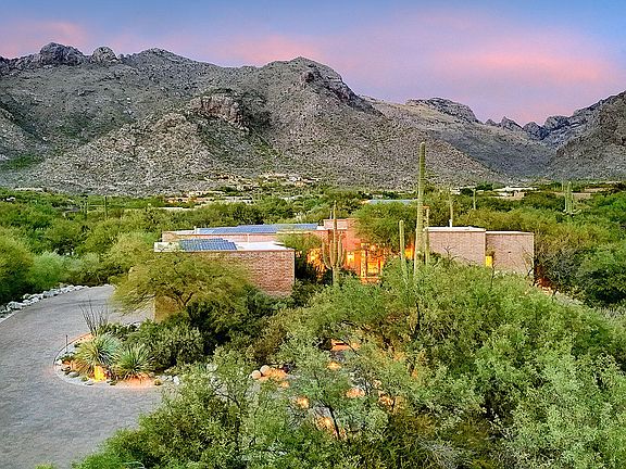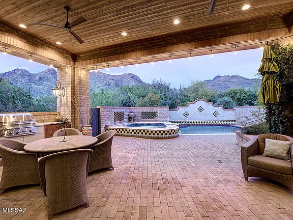 Enter into your own magical and private world within the upper gated communities of prestigious Pima Canyon Estates. Surrounded by upper Sonoran ''High Desert'' flora, mesquites, palo verdes and saguaro cacti, there is not a house in sight, only ''reach out and touch the Catalina Mountains and Pima Canyon views'' from this timeless, all masonry, classic La Quinta home with 4,137 sq. ft., 3 bedrooms plus den/office w/ built-ins that could be 4th bedroom. Featured in ''Tucson Lifestyle Magazine'', a flagstone walkway through lush vegetation leads into the living/dining room with soaring ceiling, walls of Pella windows, beamed ceiling with hand-carved corbels, fireplace and travertine floors. Knotty alder cabinets & 8' interior doors throughout. The chef's kitchen provides granite counter