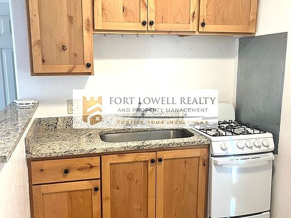 Charming Elegant Private U of A Studio Casita w/ Large Fenced Yard with Large Mature Trees/Carport~AC Oak Wood Flooring, Granite Kitchen, Gas Stove, Stainless Steel Refrigerator. Distressed Oak Cabinetry. Art Deco Tiled Bath with Decal. Ceiling Fans. $45 Water, Sewer, Trash. Equal Housing Opportunity. Fort Lowell Realty & Property Management. This property allows self guided viewing without an appointment. Contact for details.