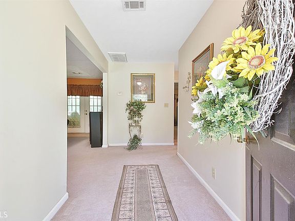 Classic, well built and nicely maintained full BRICK ranch on just under an acre. Conveniently located, right off the Hogansville Exit from Interstate 85, youll get to work in no time if you work in Newnan, the Airport area in Atlanta, or Lagrange. There are essentially 2 private master suites, plus another bedroom, dining room, living room, large kitchen, laundry room, and closed in garage is working hair salon but could be an office or playroom or converted back to garage use. Theres PLENTY of room overall at approximately 2,878 SF. Newer roof, HVAC, and plumbing. Kitchen recently updated with painted cabinets and newer appliances. Level lot. Front and back porches.