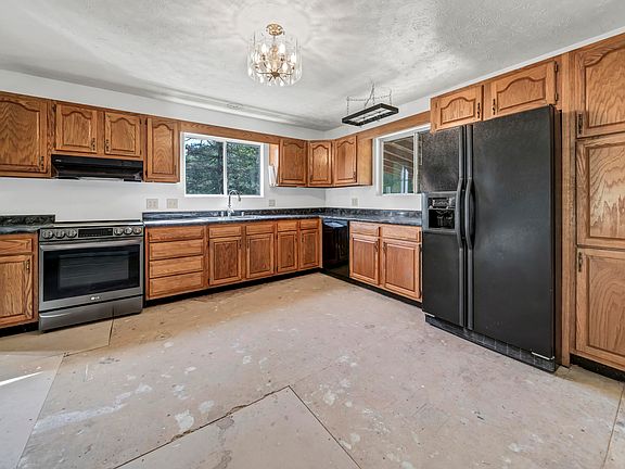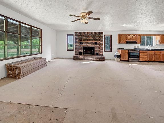 The spacious kitchen and living area is all open with a brick fireplace is a perfect place for family gatherings creating the perfect space to relax and unwind.