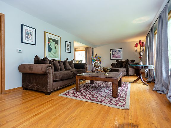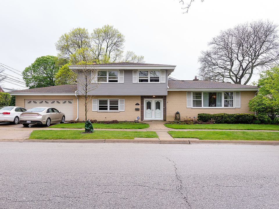 Grand four-level, 4+ bedroom 3 bath split level Colonial style home in Maine South school district. The main floor features a large foyer 1st-floor bedroom, a family room with a fireplace with patio doors to the yard, and a full bath which is the perfect situation for inlaw or home office. The next level up from the wide staircase is a large front room, dining room and eat-in kitchen with Maple cabinets, peninsula and table space. Upper-level up has 3 bedrooms, a master suite with a private bathroom, and shared bath for the other 2 bedrooms with skylight. The basement is finished with a large rec room, a 5th bedroom, and a full-sized laundry room. Newer roof and siding, updated electrical service, side drive, and an attached 2 car garage. This is a large home suitable for family living with a good flow. Walk to the community center and downtown Park Ridge.