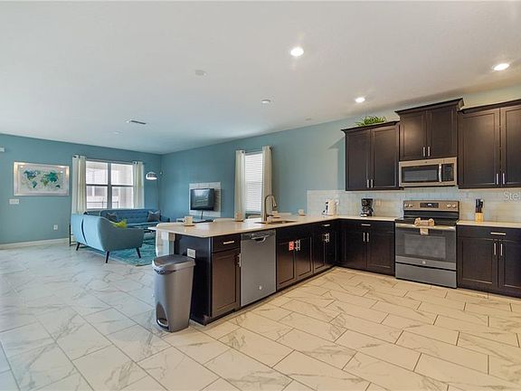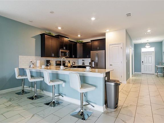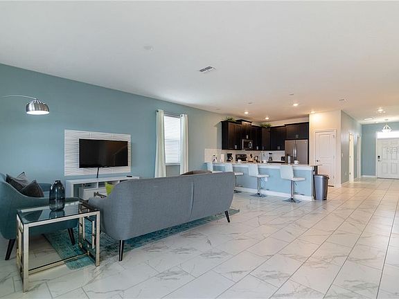 Welcome to this lovely property located at The Retreat at Champions Gate. Champions Gate community offers one of the most sought-after Waterpark and Clubhouse with Lazy River, Water-slides, Swim-Up Bar, Water Falls, Spa, Splash Pad, Grill, Bar, Fitness Area, Movie Theatre, Game Room, Tiki Bar and Cabanas. Professionally decorated, this vacation home with especially nice lake view is fully furnished. 8 bedrooms 5 bathrooms, big theatre room, plus pool, this fantastic home is just minutes away from world-famous Disney World etc. theme parks and attractions of Orlando. All stainless-steel appliances, two luxury master bedroom suites downstairs, all the other bedrooms upstairs, family area, flat screen televisions in all rooms. Well equipped kitchen, family room, and dining room area downstairs makes a perfect setting for family gatherings. Outside heated pool and covered patio offers the best fun family time to enjoy.