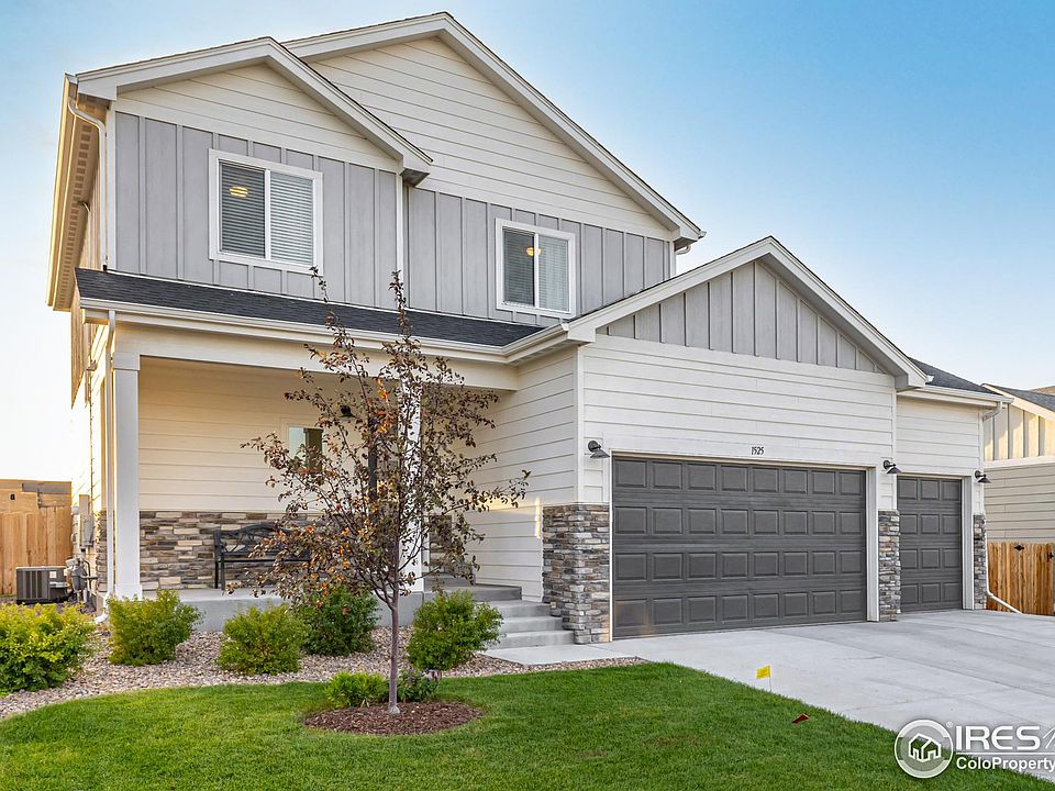 Introducing 1525 S Gardenia Dr: a stunning, designer home built in 2022 in the serene Sunfield community of Milliken, Colorado. This contemporary ranch 2-story offers 4 spacious bedrooms, including a luxurious primary suite with a 4-piece en-suite bathroom, perfect for relaxation. The open floorplan flows seamlessly from the designer kitchen, featuring soft quartz countertops, to the expansive living areas, and a large Dining Area bump-out unlike many other homes in the community. All appliances, including the refrigerator, washer, and dryer, are all included, making this home truly move-in ready for any home buyer. The fully finished basement includes a warm den/family room, spacious bedroom, workout room tucked away barn doors, and a convenient 3/4 bathroom, adding versatility to the home. The home owners were meticulous with designer touches throughout and even hid the utility room with style and function! Step outside to entertaining a gorgeous lush backyard and expansive back patio, complete with a new pergola-ideal for outdoor entertaining. The new 8 x 8 storage shed provides extra space for all your lawn essentials. The new professionally landscaped and irrigated yard offers space for kids or pets to play while providing beautiful curb appeal and a peaceful retreat. And Car enthusiasts will love the oversized 3-car garage, that has generous room for storage and even an ATV or a fourth small car, with sturdy new storage racks that convey with the home. At this incredible price you want to miss this opportunity to own such a complete like-new home in such a quiet new home community. Solar Purchase must be assumed by Buyers through ION Solar at $71.57/month and avg utility (gas & electric) is $45/month to Xcel Energy.