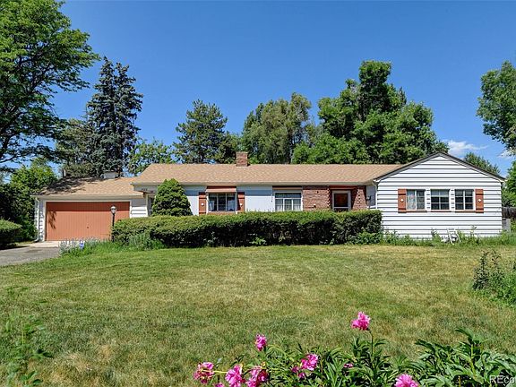 Step into a piece of Denver's history with this unique 1939 home, lovingly maintained and enhanced. Situated on a lush .59-acre "park-like" lot, the property features a beautiful, lush landscape, hard to find in the metro area. You will find an abundance of trees, flowers, and cozy patios, as well as a veritable fruit orchard right in your backyard. You can pick your very own organic peaches, pears, grapes, blackberries, and apples as they abundantly produce just for you! Enjoy roses, peonies, and so much more, all irrigated by nearly 2 shares of ditch water rights! Multiple sets of French doors connect to this lush yard from inside, where nostalgia takes over as the living room welcomes you with original hardwood floors and a wood-burning fireplace with an original flagstone surround, perfect for cozy winter evenings and hanging holiday stockings. The dining area is ideal for gatherings flowing into a kitchen with newer cabinets (all appliances included). A spacious pantry room with extra cabinets, a sink, and a ¼ bath connects to the garage. The 31x10 enclosed back porch is heated and ready for year-round enjoyment. A spacious 21x12 added primary suite features another office room/nursery overlooking the yard, with French doors, and its own ¾ bath/laundry room combo. Down the hallway, discover two more large bedrooms, a full bath, and a wood-paneled den ideal for a home office.