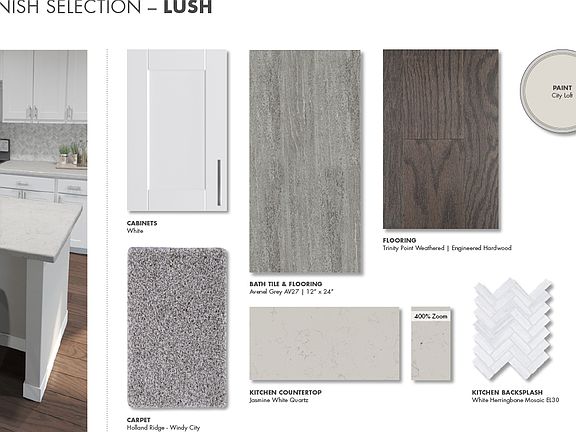 Welcome guests on the Reece's charming front porch. Upstairs, walk-in closets in each bedroom help keep things organized. White cabinets with jasmine white quartz countertops, hard surface flooring with gray beige tweed carpet in our Lush package.