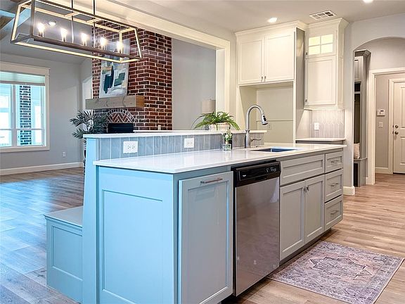 Step into this enchanting Tudor-style home, nestled in the heart of the charming Town Square community in Edmond! This 3-bedroom, 2-bath home combines timeless elegance with modern convenience. The open-concept design features a gourmet kitchen with quartz countertops, stainless steel appliances, and a spacious living room with a soaring cathedral ceiling and brick-to-ceiling fireplace. Oversized windows fill the home with natural light, while a versatile sunroom offers additional space for a kids playroom or an extra space to relax! The 3-car tandem garage provides ample parking and storage. Town Square is Edmond's historically inspired community featuring a clubhouse, resort-style pool, fitness center, youth rec center, playground, community garden, wooded green belt with walking trails, and a lake with a fishing dock. Conveniently located near I-35 and top-rated schools, this home offers style and comfort!