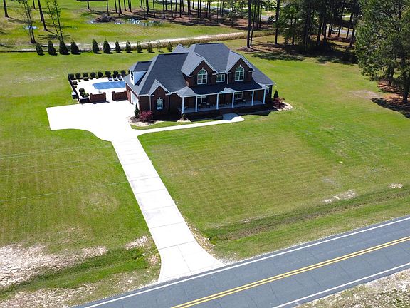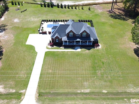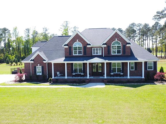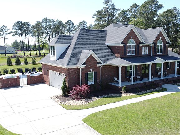 Exquisite executive-style Home situated on 2.5 beautifully maintained acres, offering the perfect blend of luxury, comfort, and functionality. This Custom-built Home welcomes you with Stunning Hardwood floors that flow throughout the main living areas. The spacious living room boasts a soaring Cathedral ceiling, Custom high windows for abundant natural light, a gas log Fireplace and Custom built-in cabinetry. An elegant Formal Dining room features a Tray ceiling w/custom lights, ideal for hosting special gatherings. A versatile flex room w/Double French doors provides a perfect space for a Home office, additional sitting area, or TV room. The gourmet Kitchen is a Chef's dream with a Coffered ceiling, Granite countertops, Tile backsplash, a large Granite island with sink, a 6-Burner Gas stove with Double oven, Breakfast bar, and a cozy Breakfast nook. The Highly desired main-level Primary Suite is a true retreat, complete with a Tray ceiling w/custom lights, Hardwood flooring, two walk-in closets, and a luxurious En-suite bath featuring Dual vanities, a Standalone soaking tub, and spacious walk-in Tile shower. Upstairs offers 3 additional generously sized Bedrooms, one with a WIC, and two Full Bathrooms w/Tile flooring and Granite vanities. A large Bonus room or 5th bedroom includes two dormer areas for added storage. Enjoy your private backyard Oasis year-round in the Easy Breeze system Sunroom equipped with a TV mount, AC unit, and retractable awning. The covered back patio features a Granite bar, Sink, Refrigerator, TV, and speakers—overlooking a Crystal blue, in-ground, Fenced Pool. Entertain effortlessly w/two firepit areas and Beautifully designed rock landscaping highlighted by Japanese Dwarf Maple trees. Other features include, Rinnai tankless water heater, New garage door (2025) and HVAC serviced twice annually. Kitchen refrigerator, garage fridge, mini fridge and 4 TV mounts convey with the Home. Located near I-95, local amenities and Fayetteville.