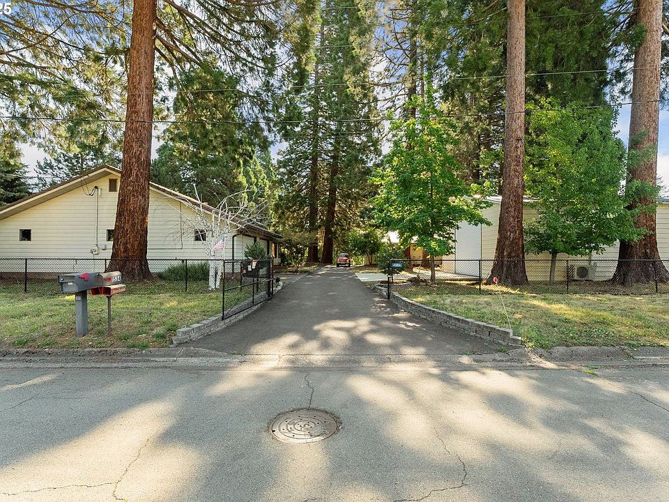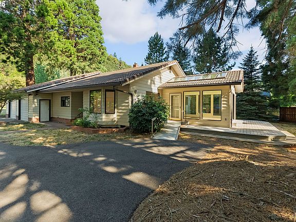 Riverfront Retreat with Shop on 1 Acre in West Roseburg! Magnificent gated and fully fenced setting nestled among mature redwoods on a full acre of riverfront land. This one-of-a-kind property offers peace, privacy, and natural beauty while still being close to town. The spacious kitchen features an abundance of cabinetry, a pantry, double ovens, and a gas cooktop island—ideal for entertaining or everyday living. French doors off the dining area open into a beautiful sunroom with skylights, providing year-round enjoyment and incredible views. The standout feature: a newly built, climate-controlled 30x30 shop (2023) with a 14ft wide x 12ft high roll-up door, car lift included, gas hookup, and industrial-strength slab—perfect for car enthusiasts, hobbyists, or serious work space needs. A mini-split system keeps it comfortable year-round. Also included is a 20x30 detached garage/gathering room with a glass roll-up door and panoramic river views—ideal as a studio, workshop, or entertainment area. The attached 2-car garage has an added rear shop area for even more functionality. Nearly new HVAC system and gas water heater offer modern efficiency. Enjoy lush landscaping with river irrigation rights and in-ground sprinklers. A rare riverfront gem with all the extras—don’t miss this one!