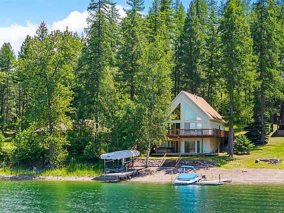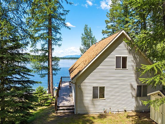 Introducing this stunning Lake Blaine home, available for the first time. Featuring 5 bedrooms, 3 bathrooms, and 2 kitchens, it offers unmatched versatility for multi-family living, accommodating large groups, or as a lucrative rental property. Upon entering the main level, you're greeted by a breathtaking wall of windows framing panoramic views of Lake Blaine and majestic Big Mountain. Upstairs, a cozy loft area and luxurious master suite with a walk-in closet await. The lower level provides direct access to the lakefront, putting the dock just steps away. This home blends comfort and functionality seamlessly, offering ample space and privacy for all residents or guests. Whether seeking a serene lakeside retreat or an investment in natural beauty, this property promises to exceed expectations.