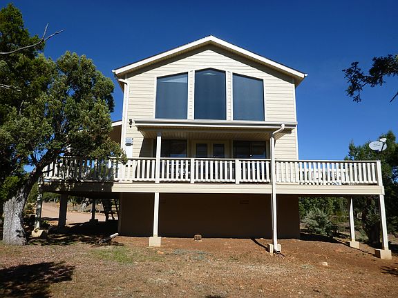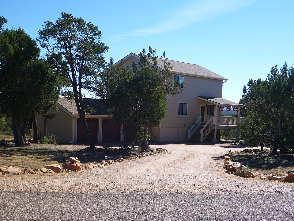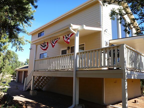 Single family, two story, detached custom home, with attached three car garage. 3 large custom 6 by 16 foot windows that have 360 degree view for miles of Apache Sitgreaves National Forest. Large, circular granite stone driveway with lights. Treed landscaped lot. Large loft with views, can be used as additional bedroom or office. Two covered porches. Three car garage with custom storage. All bedroom closets are walk-in closets. Passive solar heating, propane woodstove, ETS heater - all very energy efficient. All floors, walls and ceilings are insulated. Large double pane gas filled windows allowing wonderful views and plenty of air circulation in the summer. Ceiling fans in all rooms. Three stool eat-at bar. Lots of beautiful local woodwork. Matching quartz kitchen and bathroom counters. All house water softener and charcoal filter. New large water heater. New roof, new Hardee siding, new French style refrigerator, new dishwasher. New maintenance free deck flooring. Great room. Open floor plan. Cathedral ceilings.