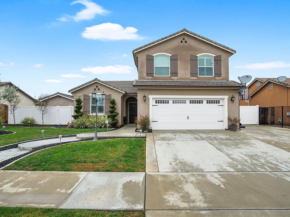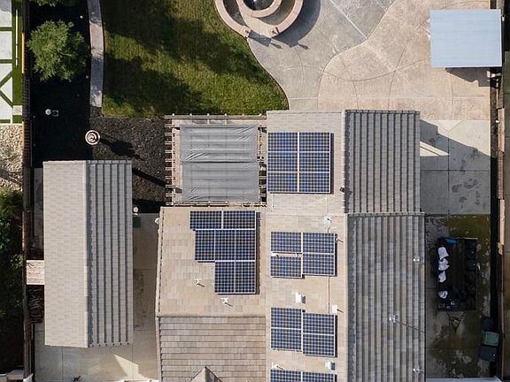 An entertainer's dream home with oversized lot, pool and custom fire-pit. Located in the Viscaya neighborhood. Marigold, is fully loaded, in front enjoy professional landscaping, elegant trees, custom lighting, concrete custom steps, solar panels, upgraded luxury white vinyl fencing with built in gate, including RV parking gate. Inside, enjoy modern open concept, with tile flooring encompassing the entire first floor. Also, includes luxury shutters and crown molding. In kitchen, enjoy a huge granite island, with stone feature, and built-in sink. Luxurious cabinets, granite counters, backsplash, and recess lighting. Walk in pantry. Living area includes custom lighting and built-in shelving. On second level, enjoy a spacious master suite, walk in closet, dual sinks. The backyard, is simply spectacular, features a custom-built stucco porch, pool, energy efficient pool equipment, fire-pit, privacy trees. Large storage room with tile roof, would be a perfect pool house, game room or ADU.
